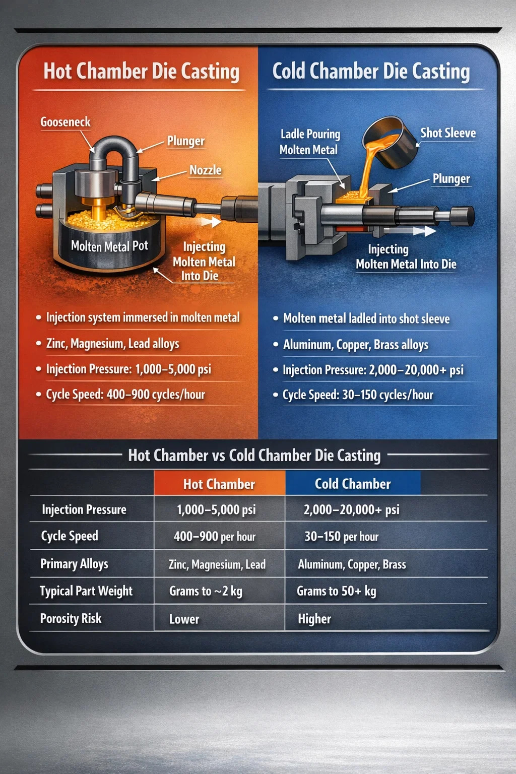 Confronto diretto: pressofusione a camera calda vs camera fredda